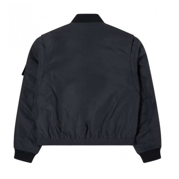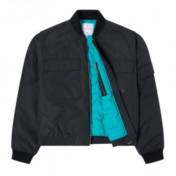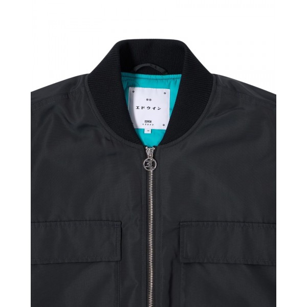 L'EDWIN Ultra Bomber è una giacca dalla vestibilità squadrata realizzata in tessuto spalmato WR a trama semplice da 125 g/m² (100% poliestere). Presenta una fodera imbottita con trapuntatura personalizzata, una chiusura frontale con zip in metallo, numerose tasche con bottoni automatici e zip, collo e fondo a costine e una stampa EDWIN sulla tasca anteriore.