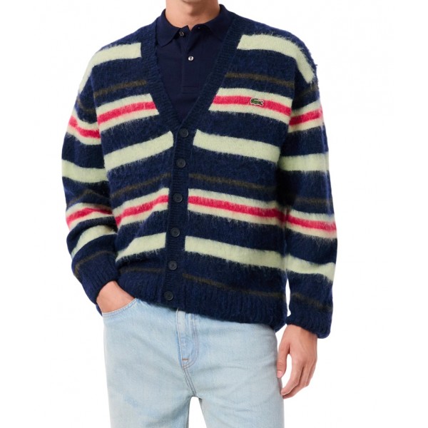 Questo cardigan testimonia l'eleganza e la competenza di Lacoste. Realizzato in morbido e confortevole misto lana e alpaca, con dettagli a righe a contrasto all over. Uno stile audace e legato alla tradizione, con dettagli pregiati e un caratteristico coccodrillo ricamato.