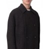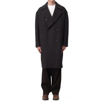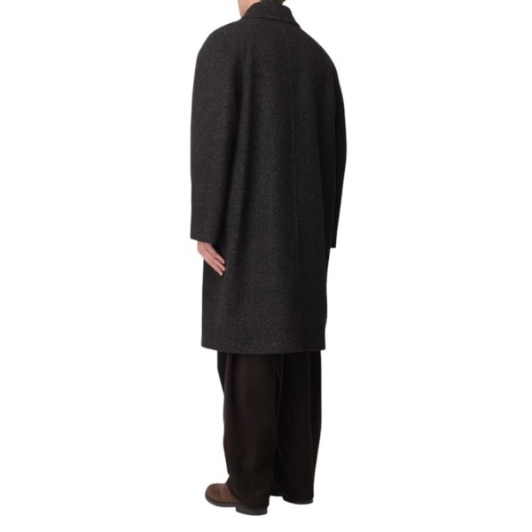 Cappotto doppiopetto in feltro di lana con fodera interna in poliestere. Il design si distingue per i revers ampi e la costruzione sartoriale delle maniche, con spalla leggermente scesa e taglio raglan che garantiscono comfort e fluidità nei movimenti. Le tasche a filetto in vita, foderate in cotone, completano il capo con un tocco funzionale ed essenziale.