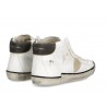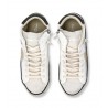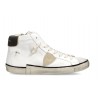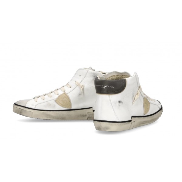 L'effetto vissuto di questa sneaker Prsx high è il simbolo dell' artigianalità e dello stile unici che rendono così esclusive le collezioni Philippe Model. Le forme si ispirano ai modelli anni '80 realizzate con materiali italiani come vitello e suede nelle nuance più neutre. Lo scudetto laterale con sottoscudo e lo spoiler in pelle vintage a contrasto aggiungono una nota cool come il profilo nero della suola e le fasciature laterali artigianali con sporcature.