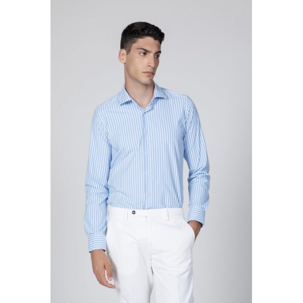 Camicia formale sottogiacca in tessuto tecnico rigato tinto in filo