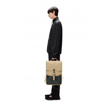 Mix Backpack Mini è realizzato con un mix del tessuto PU impermeabile firmato Rains e poliestere, progettato per garantire resistenza al trasporto, durata e una sensazione liscia al tatto.