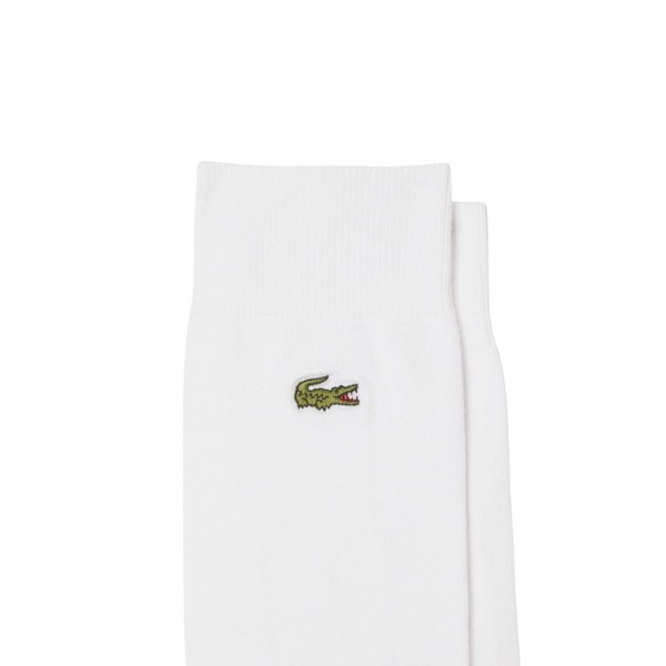 Dei calzini alti mélange con cui sfoggiare un look ricco di stile dalla testa ai piedi. Un modello elasticizzato realizzato in jersey misto cotone biologico e decorato dall’iconico coccodrillo verde.